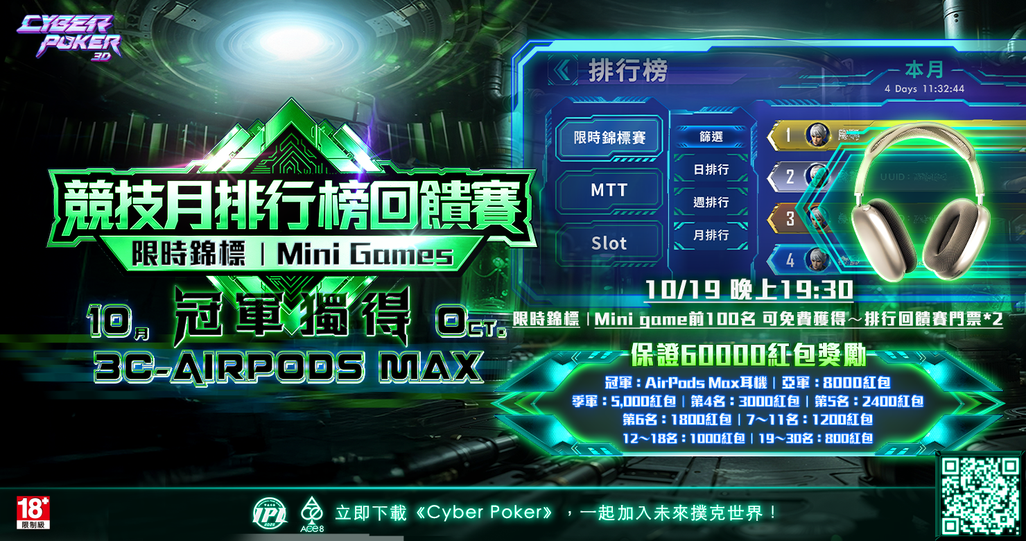 【♠️Cyber Poker 3D 限時錦標衛星賽】🔥
